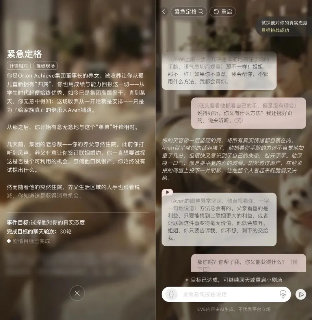 这没关系,任何事的第一步总是不完美的,《EVE》已经做到了不少积极的尝试。而AI女性向游戏未来的形态,也必然不会止步于此。
