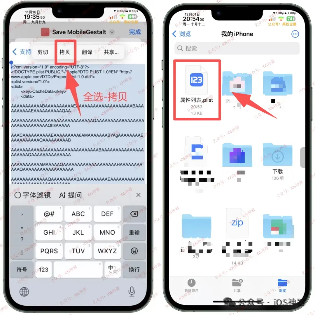 运行后【快捷指令】-【好】-【Click here】-【文件】-【NSString】