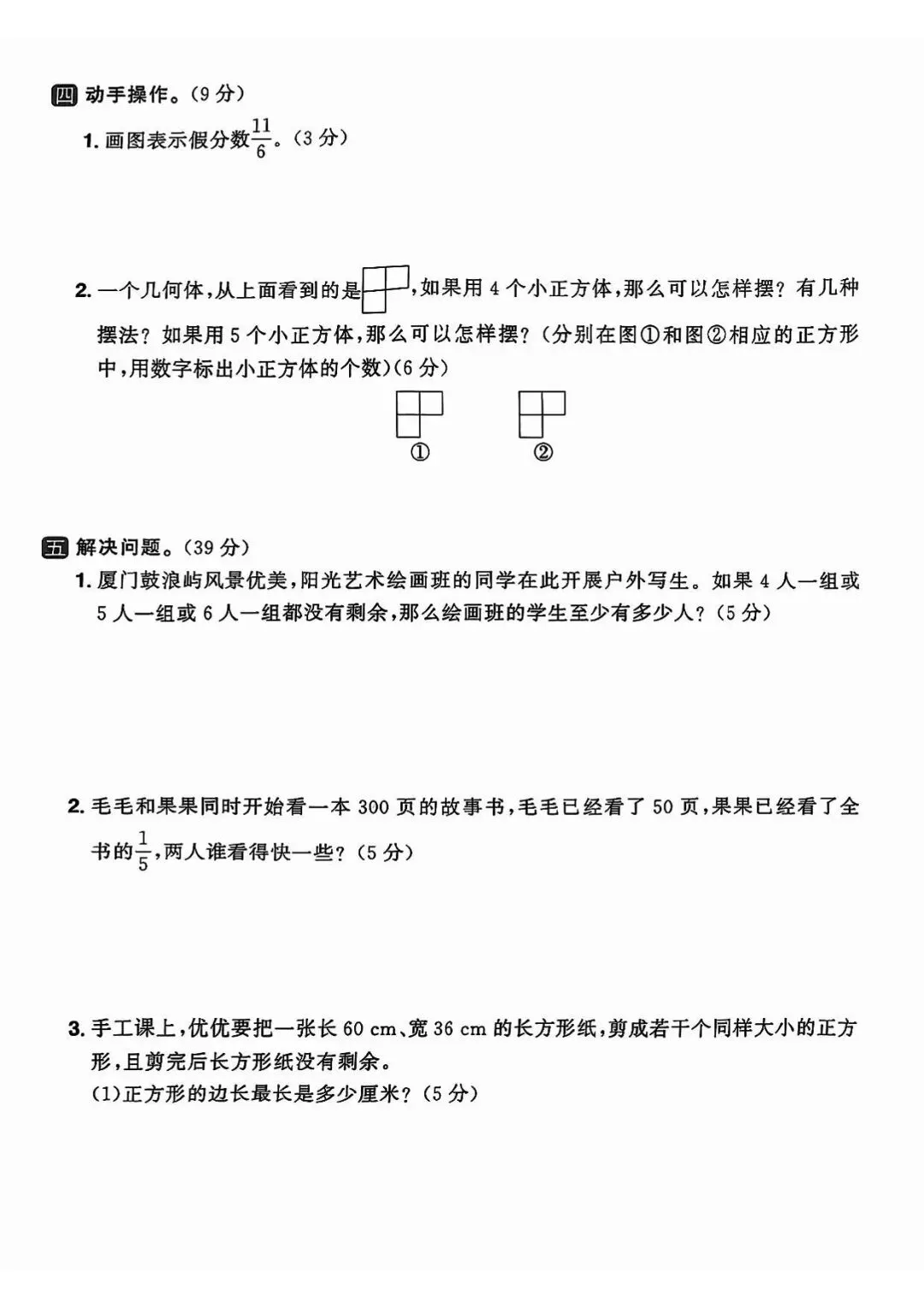 5套押题卷均围绕期中前核心考点设计,全面覆盖:因数与倍数、长方体和正方体的认识及表面积、分数的意义和性质、分数加减法(基础)四大单元,精准押中期中高频考点、易错点与重难点。每套试卷题型规范,包含填空、判断、选择、计算、操作、解决问题六大题型,难度由基础到提升阶梯分布,既注重基础题巩固,也侧重拔高题训练,贴合校内期中考试难度与命题思路。