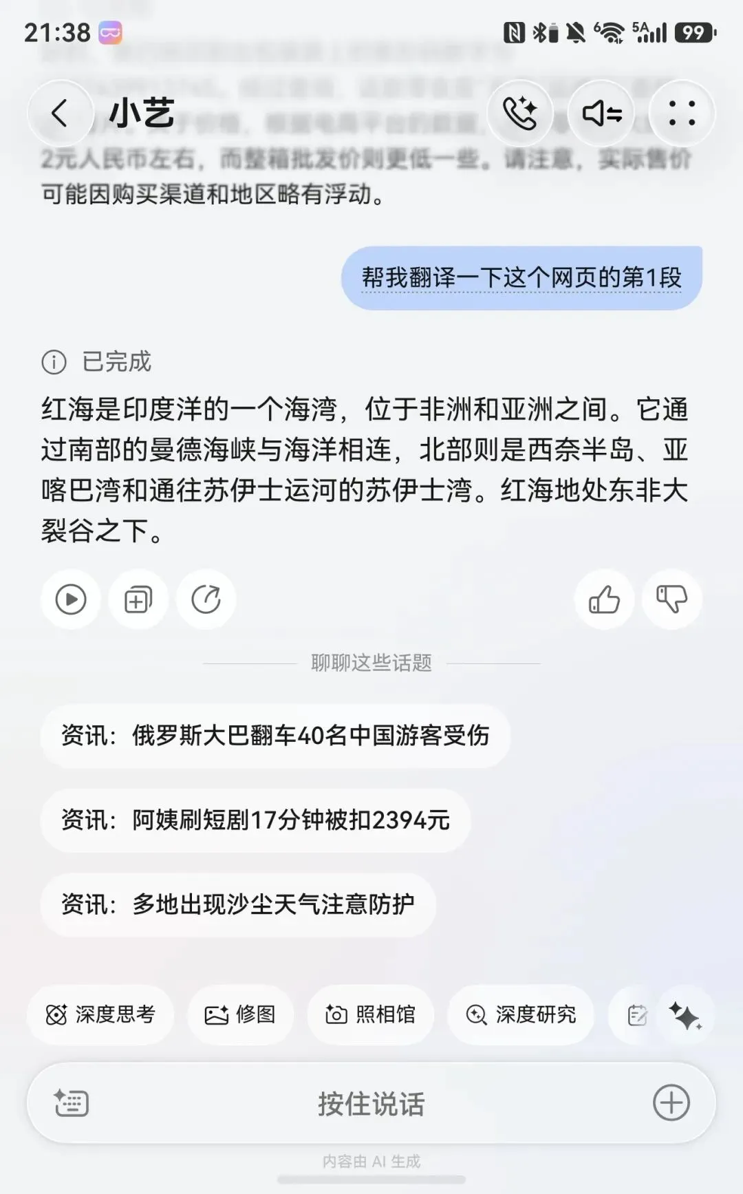 另外,让我们感到比较惊喜的还有它的实时翻译功能,在电脑上打开一个英文网页,它能直接识别出屏幕上的英文单词,不仅能翻译还会归纳总结。