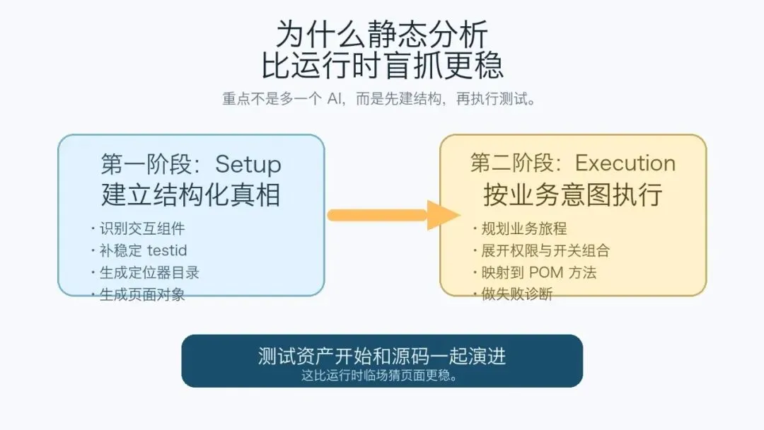 如果测试团队想把 AI 真正用进企业级 UI 回归,重点不该只是“让 AI 会点按钮”,而是“让测试先理解源码结构,再执行页面动作”。