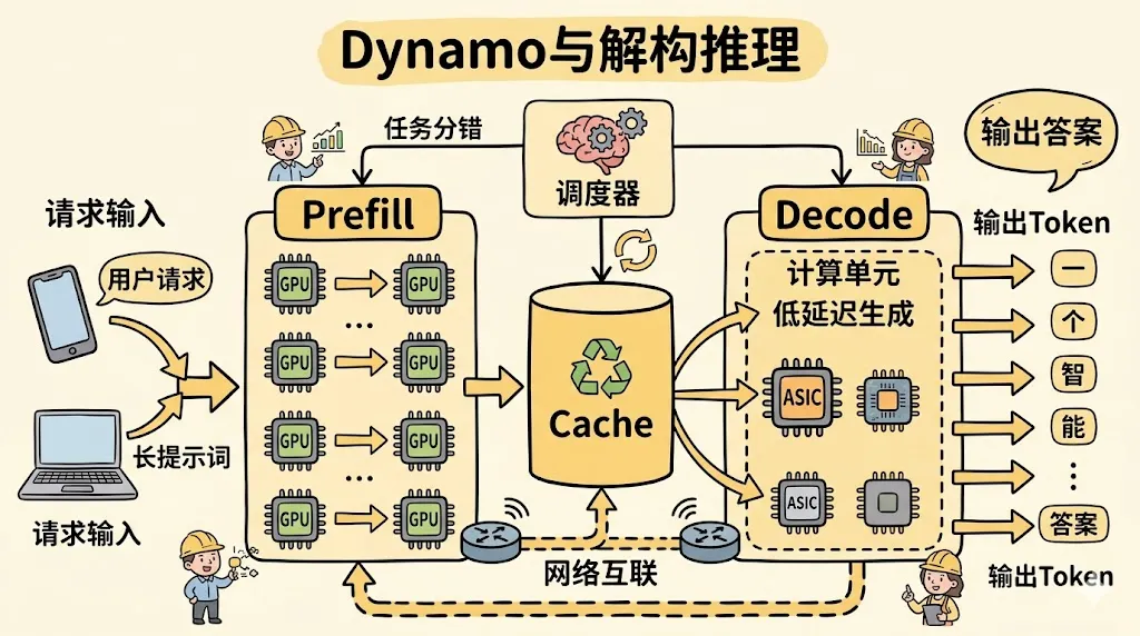 • Dynamo 强调 disaggregated serving,也就是将不同推理阶段拆开优化 -