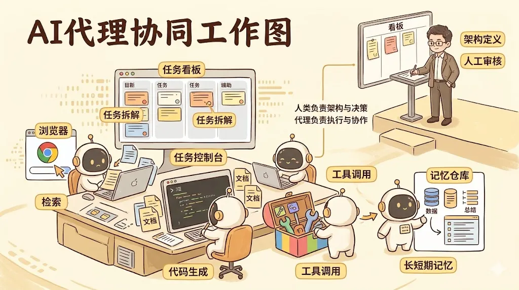 当生成代码、跑测试、写文档、搜资料、做 review、部署和监控都可以被代理分解承担时,人类工程师最稀缺的能力就会从“写每一行代码”,转向: