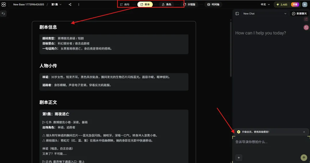 整个过程以对话式交互为核心,系统会主动拆解步骤、确认节点,并允许创作者在任意阶段介入调整。
