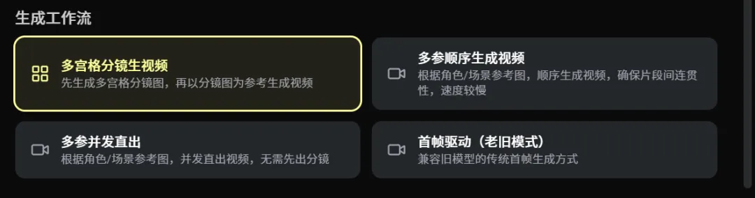 - (多宫格图生视频):可控性高,适合复杂叙事