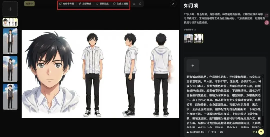 - 系统会生成主视图,并自动扩展侧视、背视等多视角素材