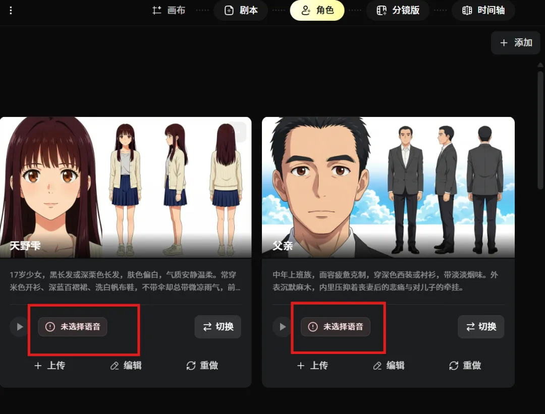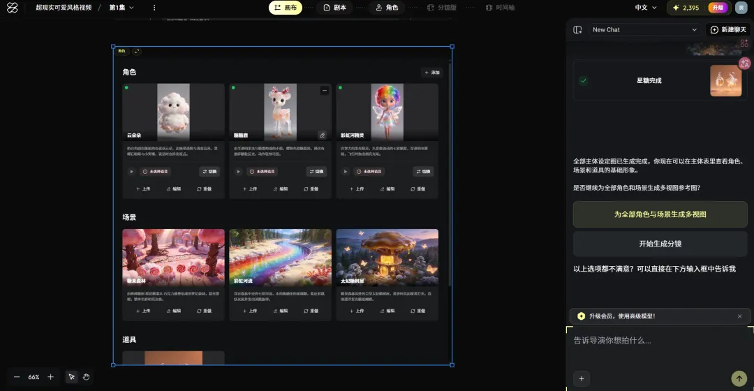 剧本确认后,Zopia 会自动生成角色、场景和关键道具。