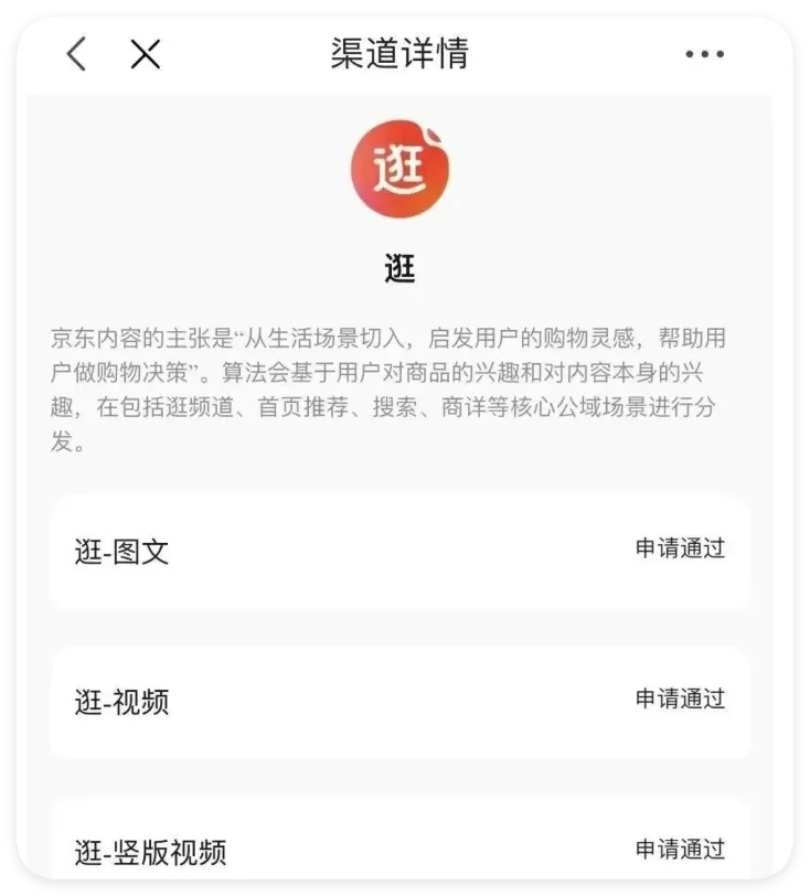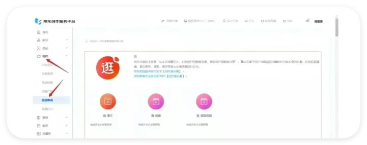 浏览器搜 京东创作服务平台 ,用手机号注册京东账号,登录后点左边菜单栏的 创作 → 渠道申请 ,找到 “逛” 这个渠道,点申请通过就行。