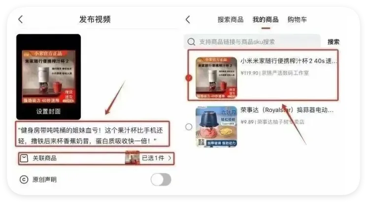然后上传生成好的带货笔记和商品视频,接下来就到重点认真听, 这里一定记得关联商品, 不然没收益,发布后只要有人通过你的笔记下单,你就有佣金,