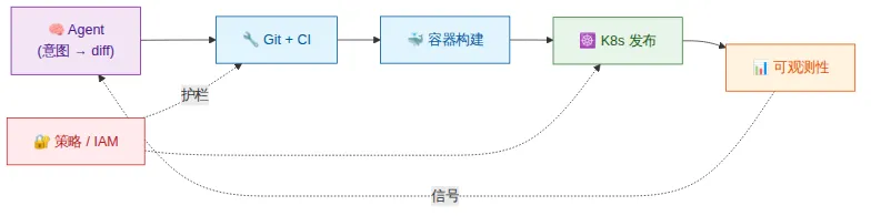 | Git + CI/CD | 把一份 diff 确定性地变成一次部署 | Agent 天生产出 diff,流水线天生处理 diff |