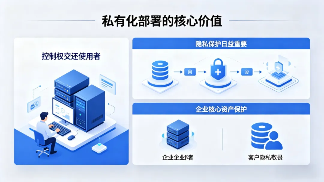 私有化部署的核心,就是把控制权交还给使用者。在隐私保护日益被重视的今天,选择支持私有化部署的AI方案,不仅是对企业核心资产的保护,更是对客户隐私的敬畏。