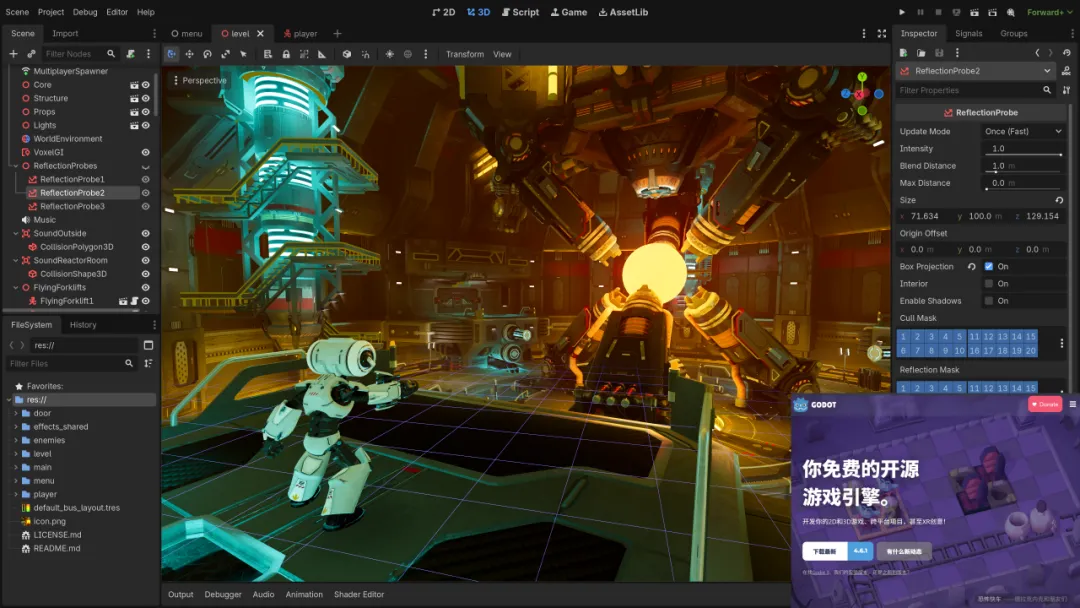 Godot是免费且开源的游戏引擎,可完成2D&3D游戏