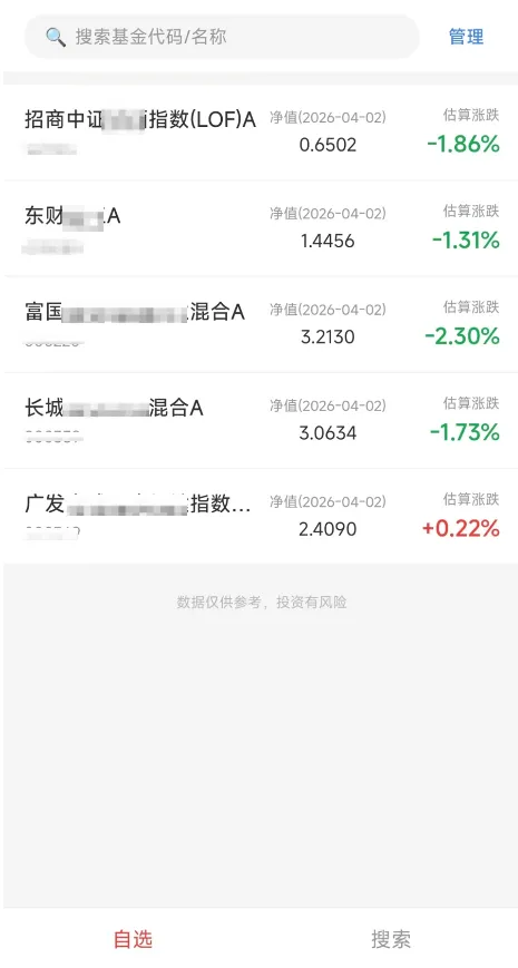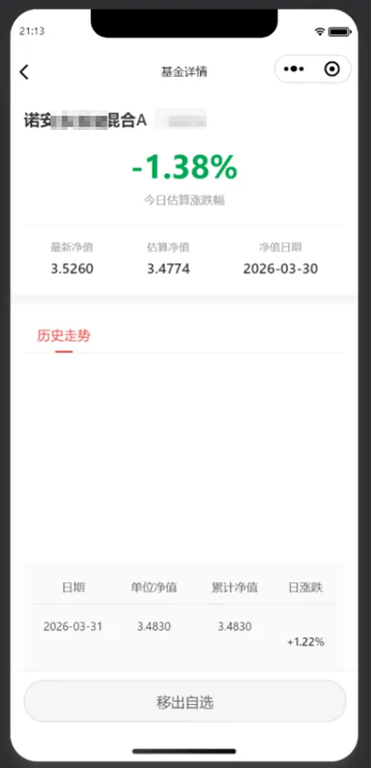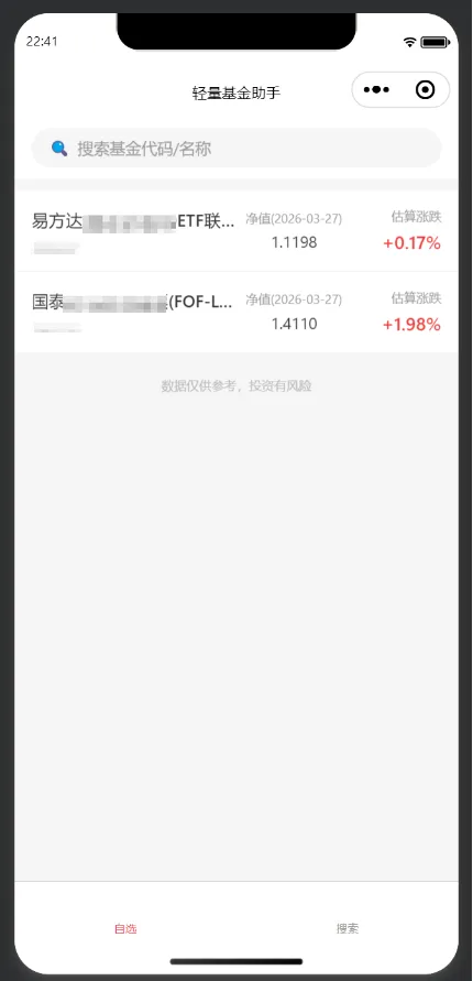 2. 数据持久化:完全依赖小程序本地缓存,存储用户的自选基金代码列表 -