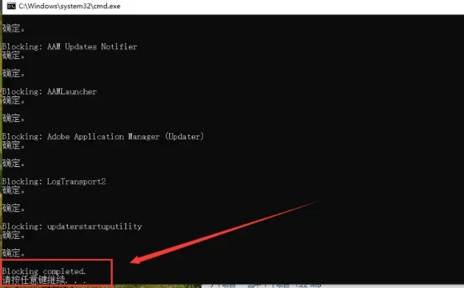13. 防火墙已成功阻止Adobe联网,按任意键关闭窗口。
