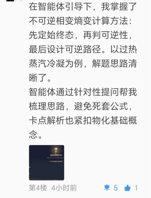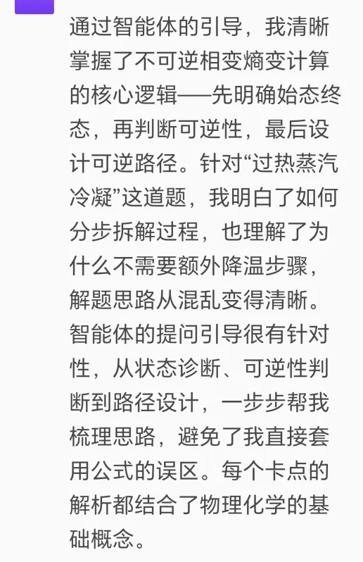 我想象的场景特别美好:学生像聊天一样问“为啥相变熵是ΔH/T?”,AI不仅能解释,还能反问“如果温度和压力变了呢?”