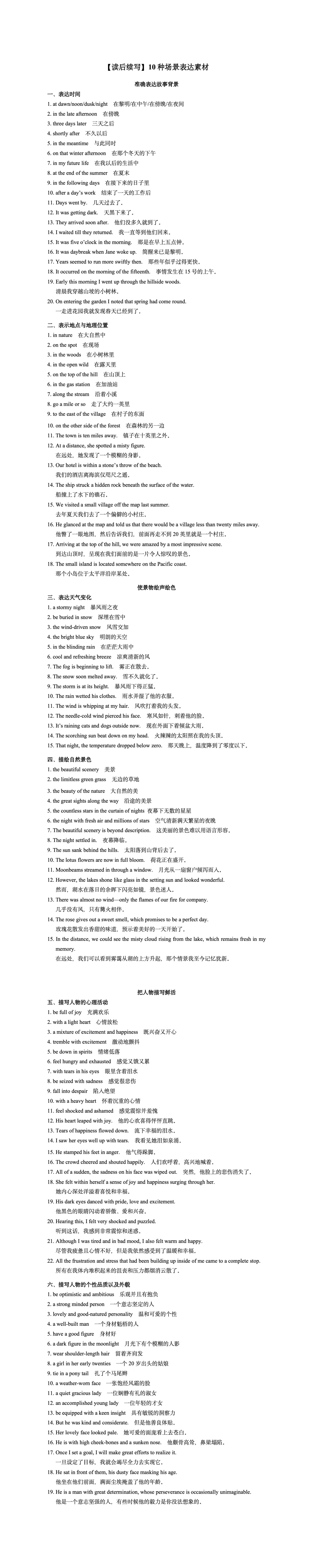 【文末下载】【读后续写】10种场景表达素材