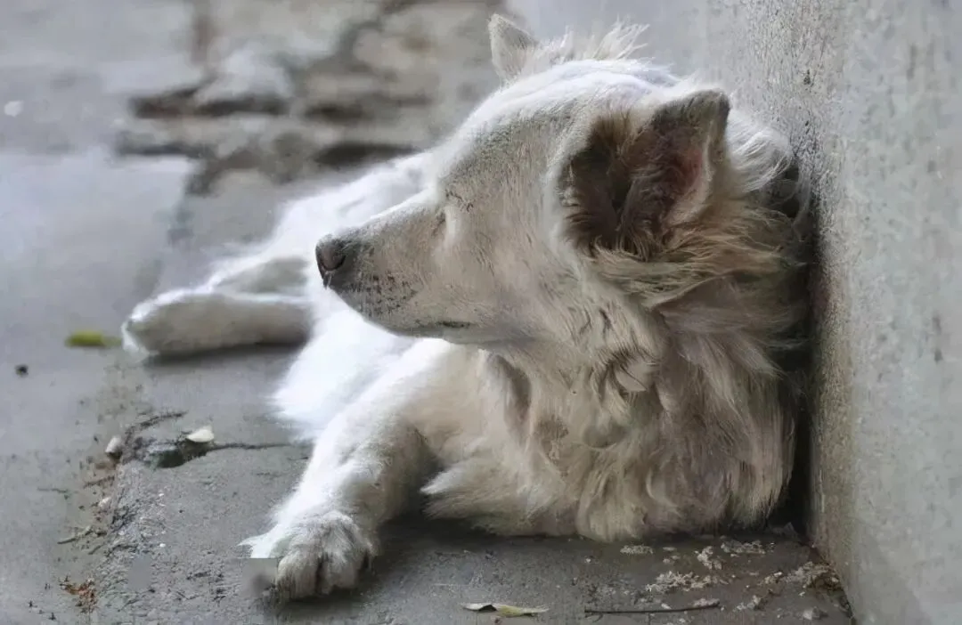 狗狗靠着墙睡觉,看起来似乎没有什么,其实也暴露了,它内心还是有一些小防备的。