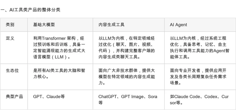 一、AI工具类产品的整体分类: