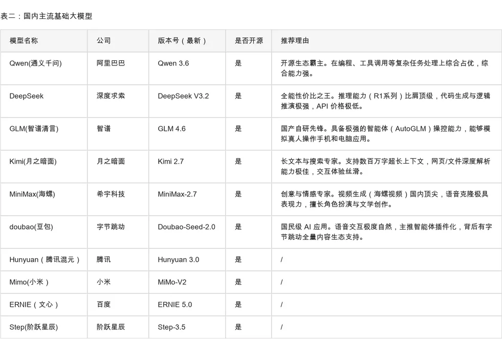 表二:国内主流基础大模型: