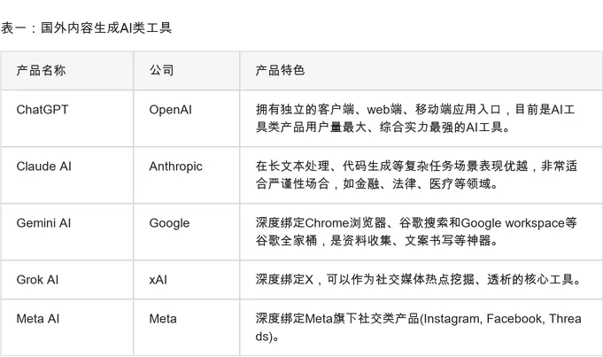 表一:国外内容生成AI类工具: