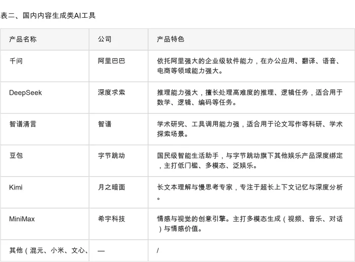 表二、国内内容生成类AI工具: