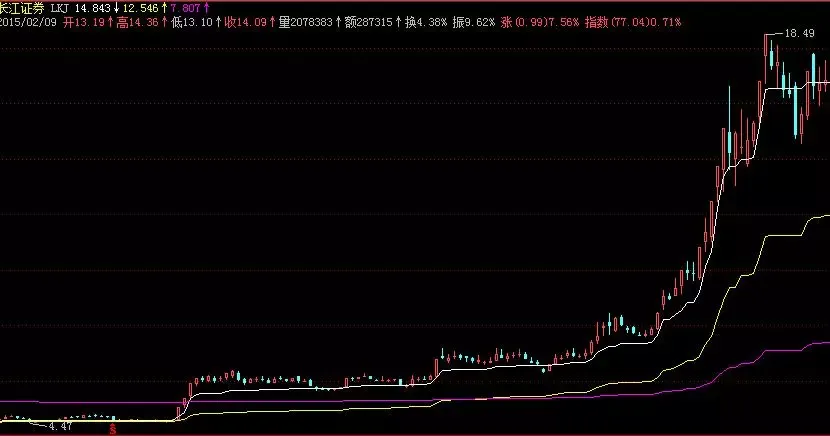 ZX:=AMOUNT/(VOL*100);XL:=(ZX/REF(ZX,1)-1);DMA(C,XL*4.5);DMA(C,XL);DMA(C,XL/4.5);DRAWTEXT_FIX(C>O,0.01,0.9,0,'微信订阅号:翔博软件工作室'),COLORyellow;