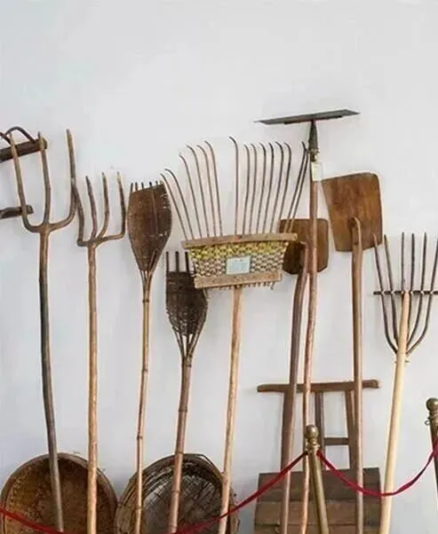 这面墙上一排长柄家伙,全是庄稼人的“手”,有的三齿有的五齿,铁叉头黑得发亮,木柄被汗浸得发暗,旁边还有扁铲,耙子,簸箕,连小木梯都挂着。我爸以前说过一句特别实在的话,说你看着都是叉子耙子,其实各管一摊,翻草的,起粪的,扒麦秸的,收玉米秆的,错拿一把,干半天白费劲,他那语气就跟讲究做饭用错勺子一样。那时候院子里一响,都是铁头碰石头的脆声,到了傍晚把工具往墙上一靠,手心全是印子,现在工具也有,可更多是机器上的一个按钮,按下去轻松了,人也就不再记得哪把叉子最顺手。