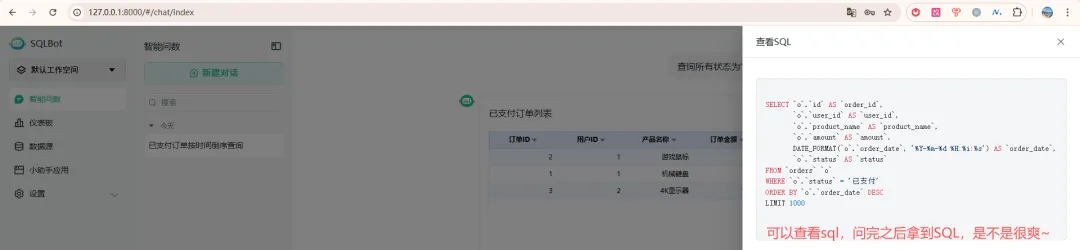最后回一下那位读者:SQLBot给我的感觉还不错,感谢推荐。