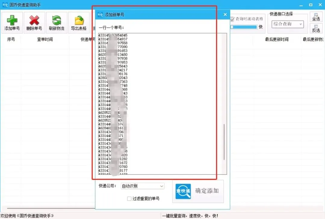 •重复项过滤:批量添加单号时,自动过滤重复单号,避免数据冗余,减少后续数据整理的工作量。