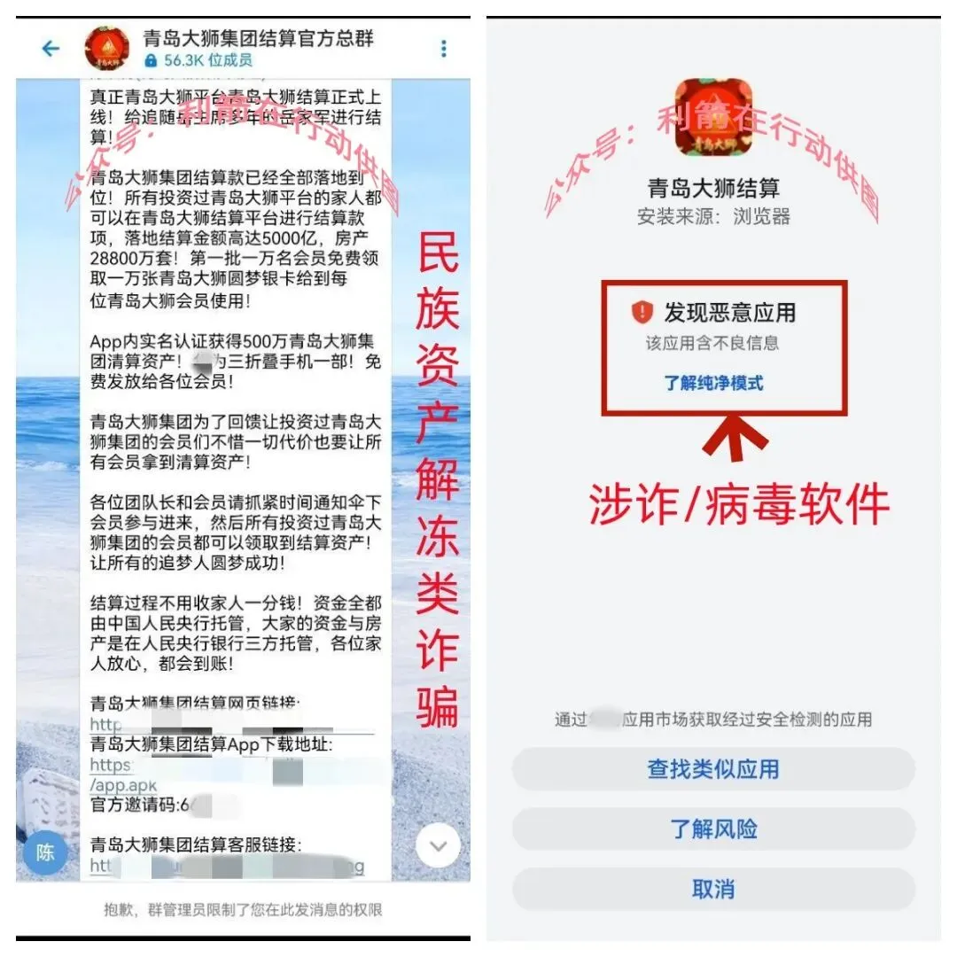 近期网络中出现了假冒官方的青岛大狮结算APP,应用商店里面没有这个APP。该项目网站搭建在境外,系非法网站,下载青岛大狮结算APP的时候,手机上弹出“发现恶意应用”,是病毒软件。