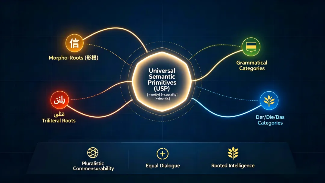 ·Civilizational Rootedness of Cognitive Primitives: The cognitive primitives of CNI (e.g., the Morpho-Root of Chinese, the triliteral root of Arabic, the grammatical categories of German) derive directly from the structural features of that civilization’s language, with meaning embedded rather than statistically assigned.