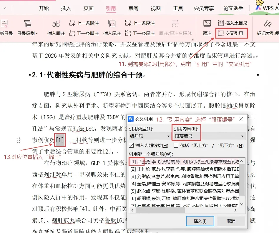 2. 插入交叉引用: