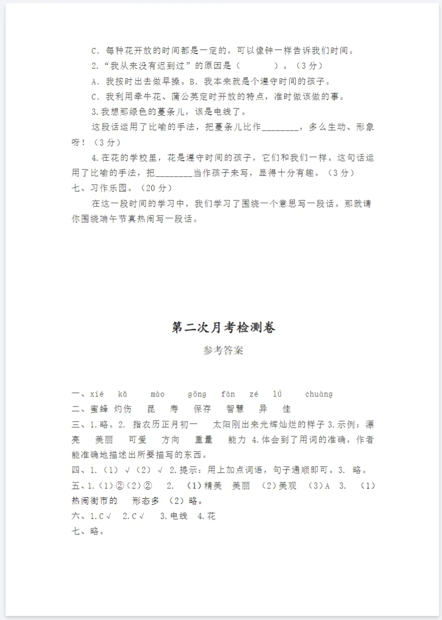 🔥部编版三年级下册语文|第二次月考测试卷 3 套,高清电子版,免费下载可打印,月考考前必刷!需要的家长可以收藏打印给孩子练起来吧!