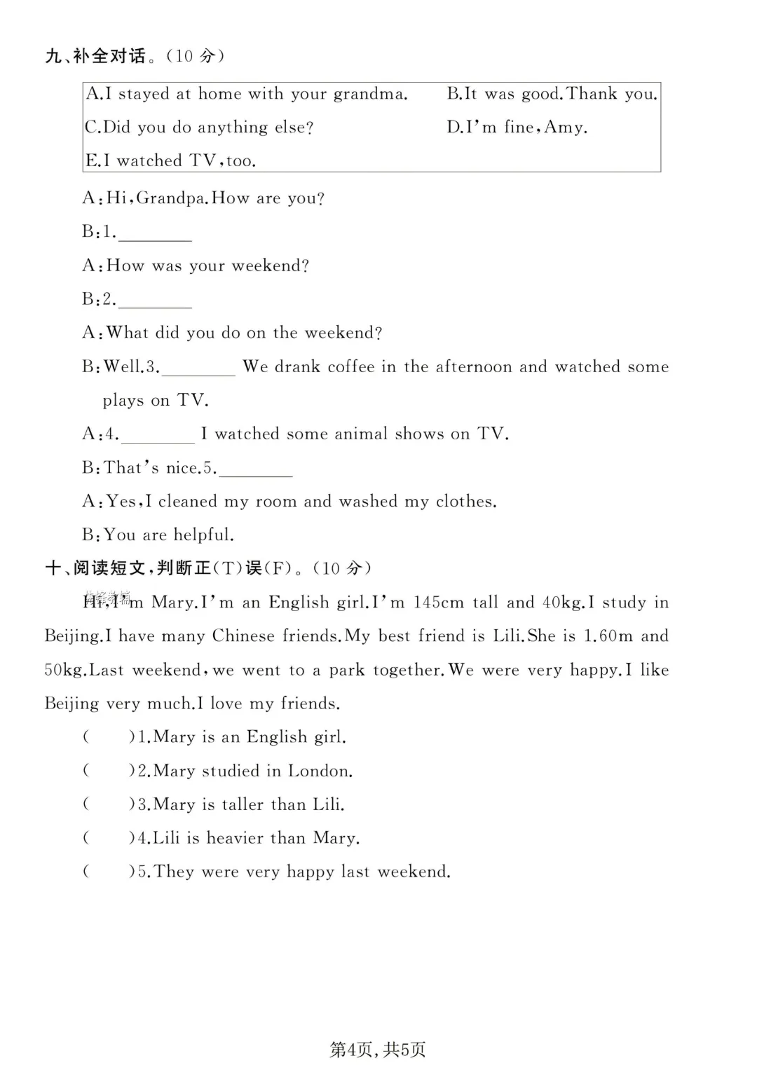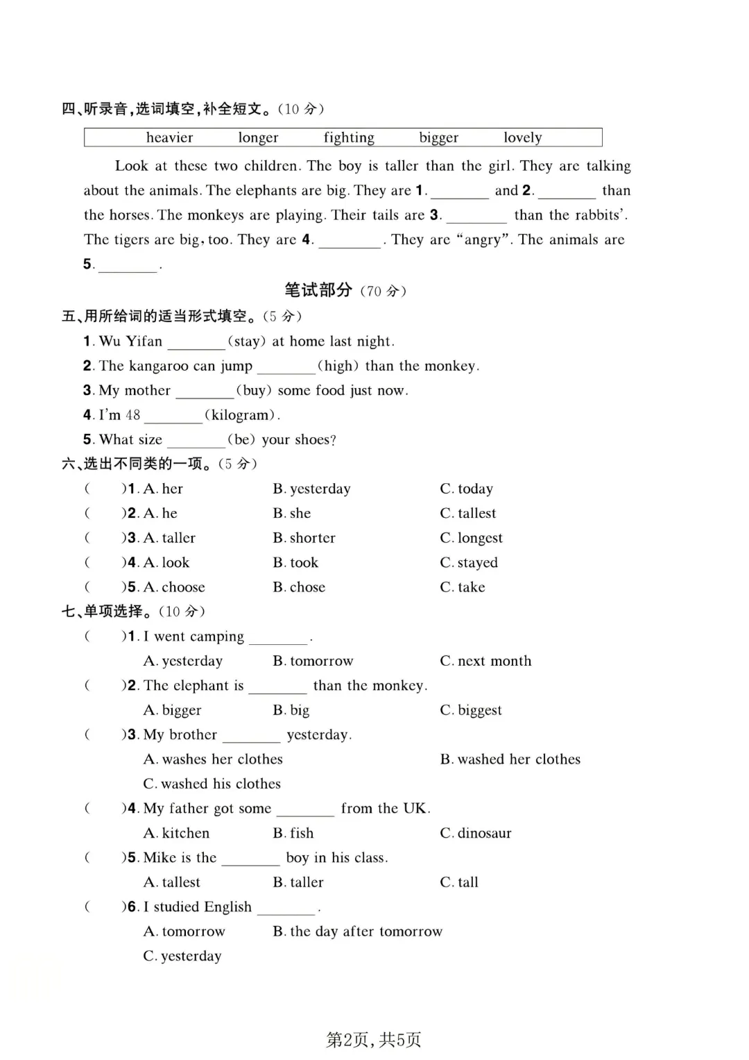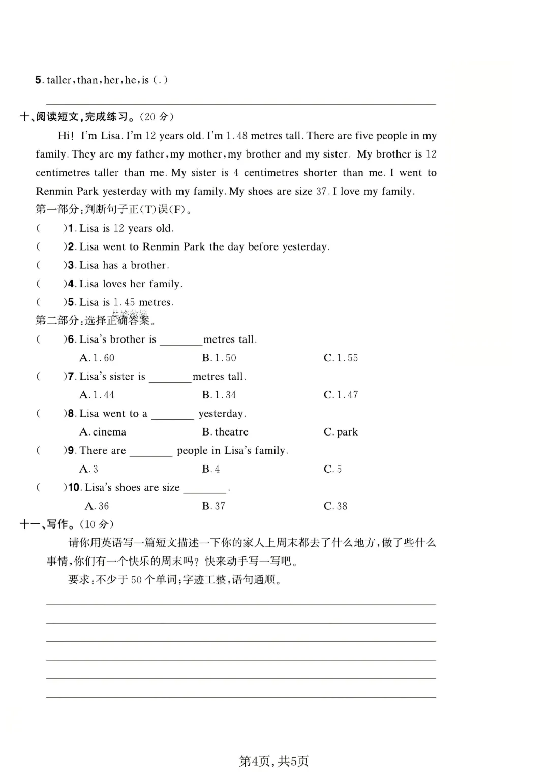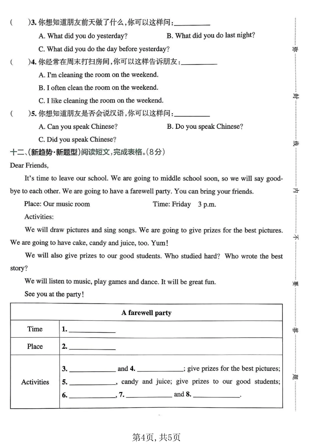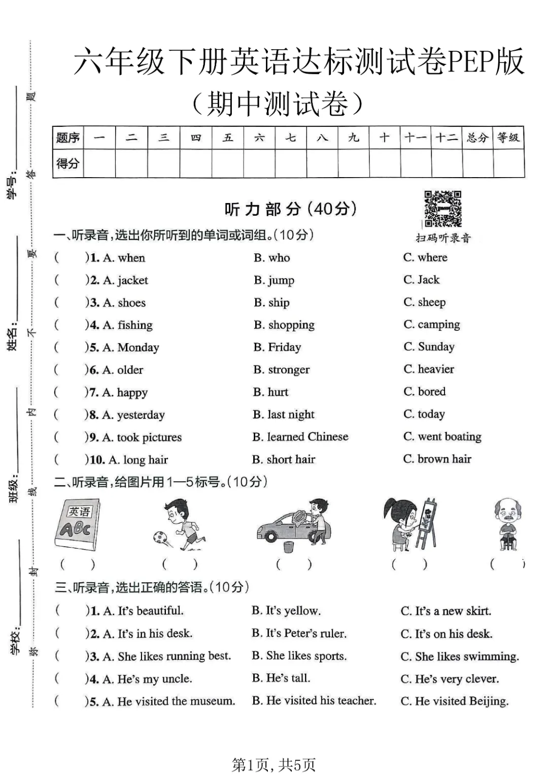 2026春新版六年级下册英语人教PEP版【期中测试卷5套带答案】丨完整高清可打印