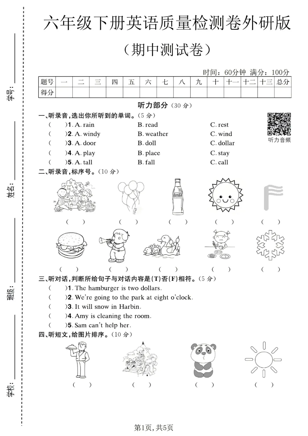 今天给大家分享的是:2026春新版六年级下册英语外研版三起点【期中测试卷3套带答案】丨完整高清电子版可打印