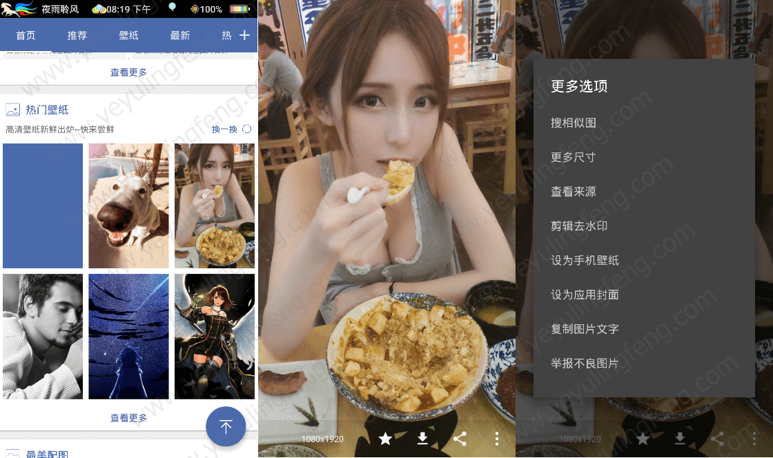 图片内容以摄影、风景、唯美、二次元、小姐姐、内涵等因素为主,适用于血气方刚身体倍儿棒的年轻小伙子。前几天有小伙伴反馈图凌APP的问题,用这款应用作为替代品倒是非常不错的选择。总之这是一款图片壁纸软件又不仅仅是图片壁纸软件,更多未提及的其他功能大家自行探索!嘚~驾~