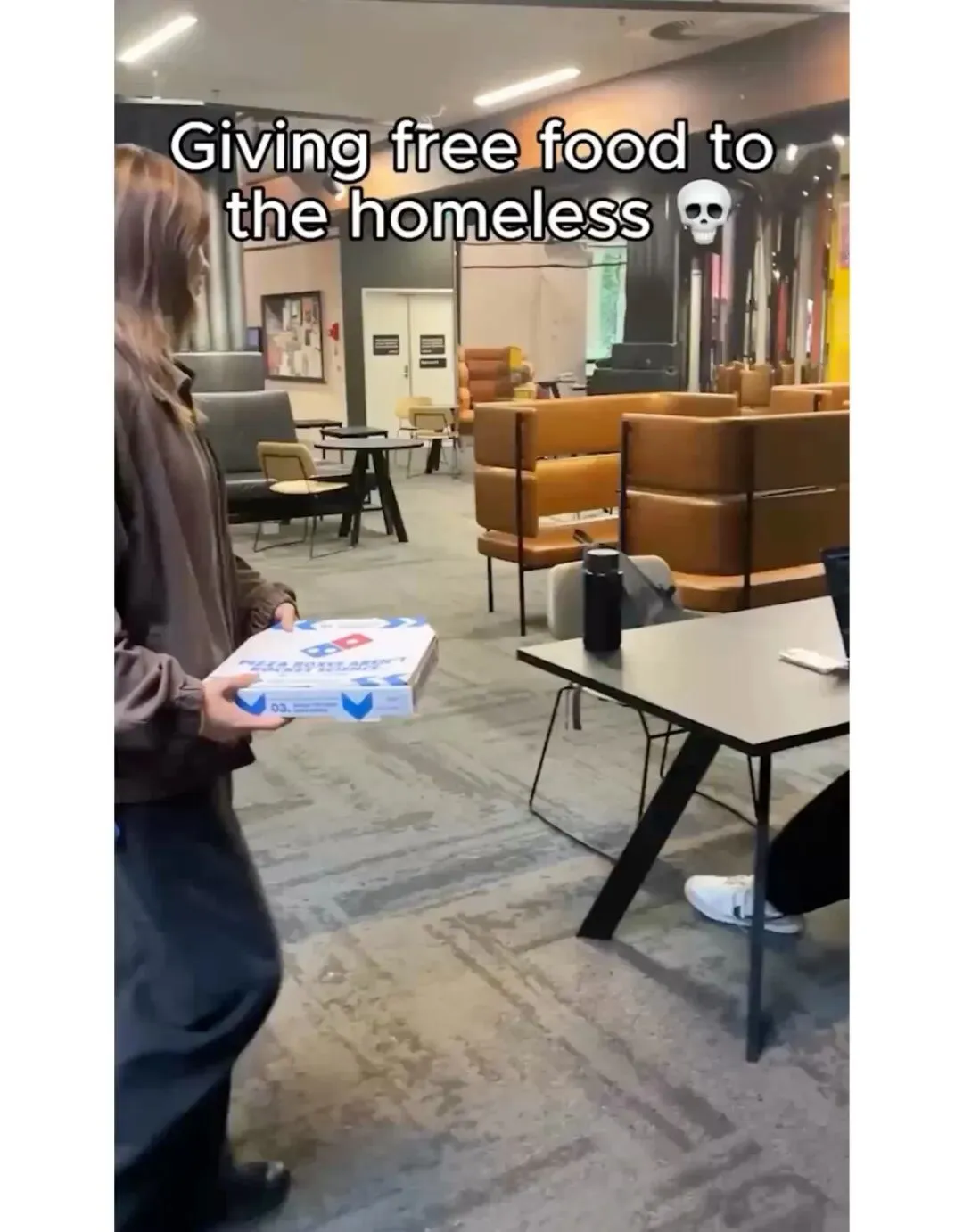 他也无法完全忽视社交媒体上那些嘲讽计算机科学毕业生求职困境的梗图。最近的一个例子是一篇题为“给无家可归者免费送餐”的帖子,图片中一位女士正给在笔记本电脑上编程的学生们送披萨。