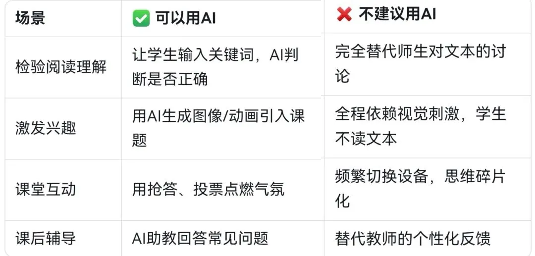核心原则:AI可以放在“前端”激发兴趣、“后端”辅助批改,但“中端”的师生对话、生生交流,必须留给人。