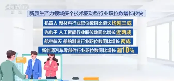 2026年一季度,新质生产力相关行业用人需求暴涨。机器人、新材料行业招聘职位数同比增长均超三成,光电子、人工智能增长近两成,航空航天、船舶制造也达到两成。一线城市依然是高地,北京、深圳、上海新质岗位占比分别达7.4%、4.8%、4.6%;而武汉、苏州、南京的岗位增速更是分别达到28.3%、24.8%、20.5%。