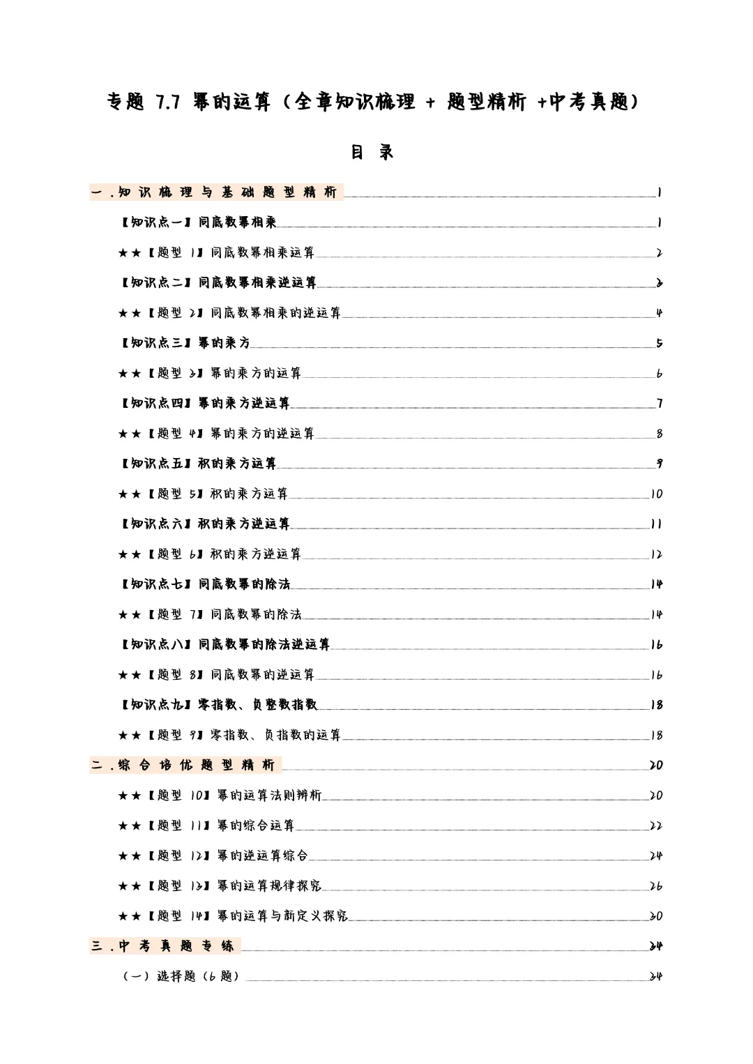26春七年下册数学苏科版《专题7.7幂的运算》(试卷版+解析版)51页~完整电子版可打印