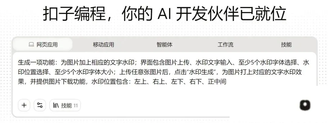 网页应用、APP、智能体、工作流、Skill技能,AI编程基本都能覆盖。