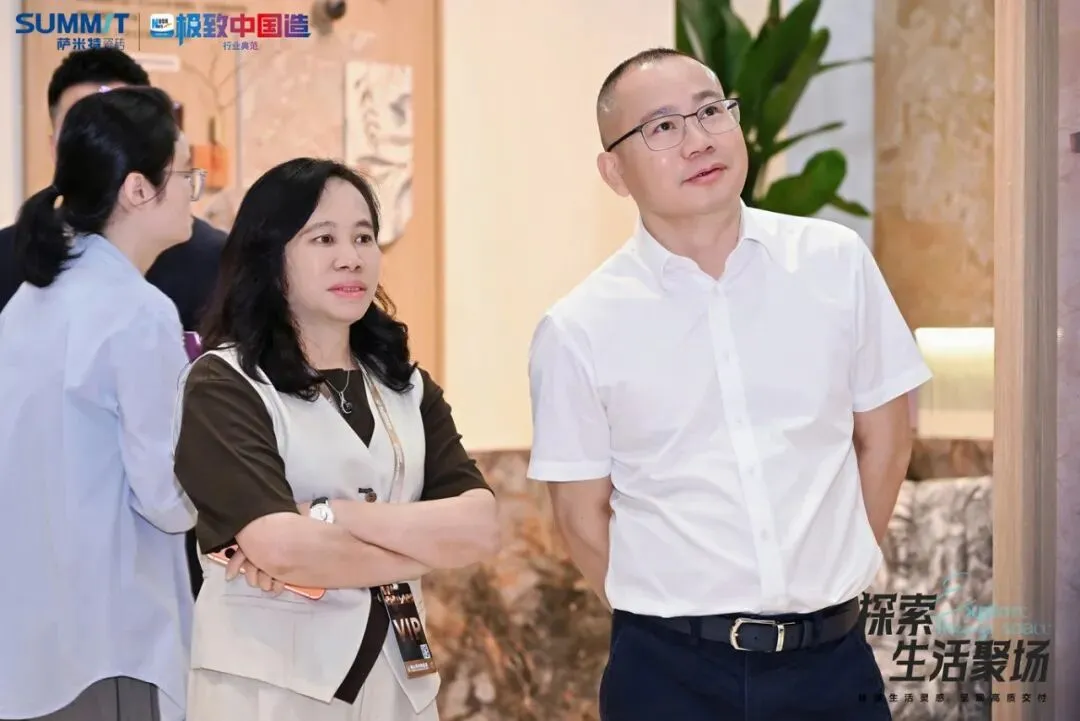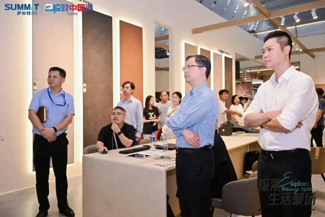 众人细致品鉴空间场景、新品纹理、工艺技术与全链路解决方案,对萨米特「家文化×年轻态」前瞻性战略升级布局给予高度评价,并纷纷点赞萨米特的品质追求和品牌创新、对萨米特完成从 “卖瓷砖” 到 “卖生活方式” 的深度蜕变,深耕年轻人居,实现数字化赋能终端的举措给予了肯定。