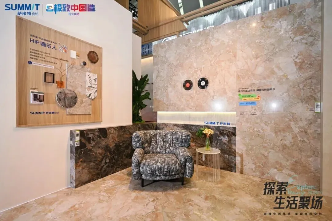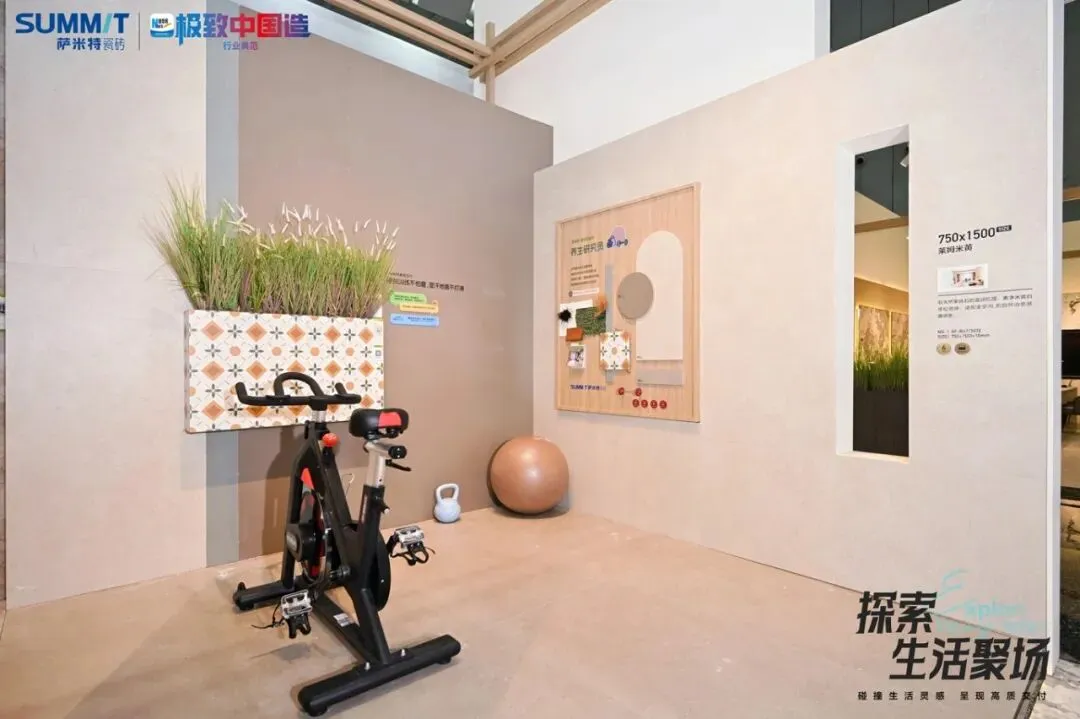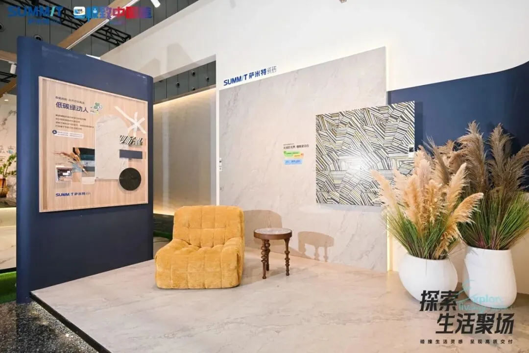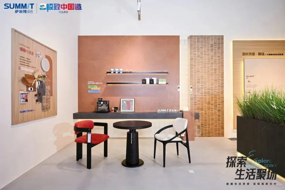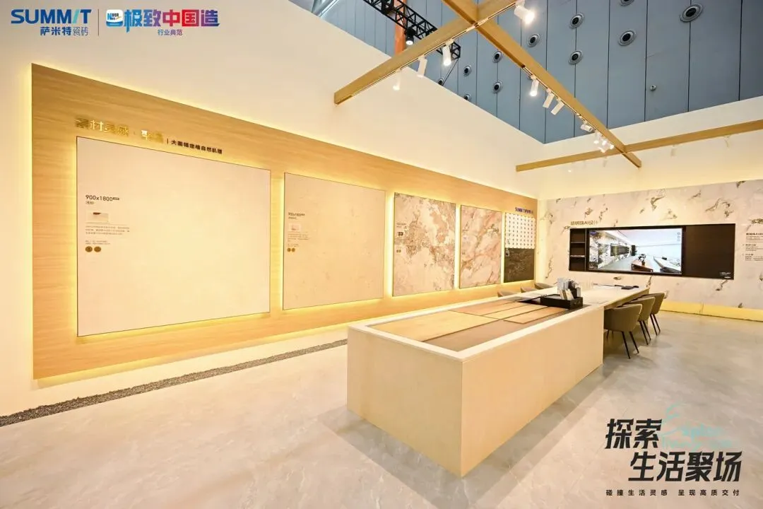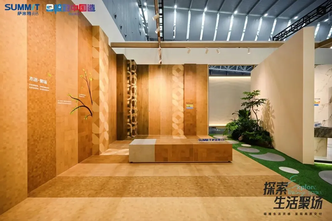 本次展位,萨米特彻底颠覆展陈逻辑,打破传统建陶展位的印象,深度融合家文化 × 年轻态核心理念,打造沉浸式「探索・生活聚场」概念展馆。