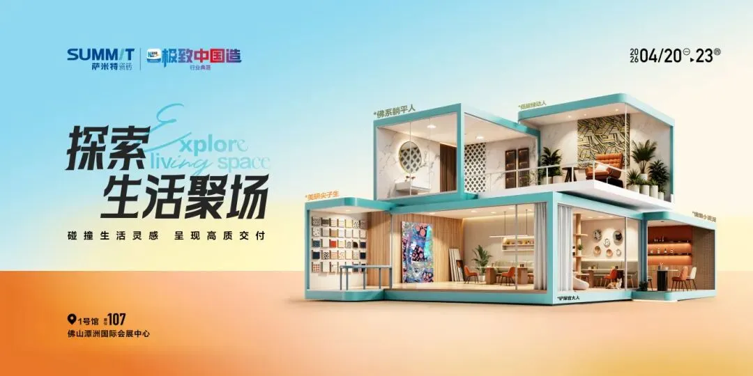 4月20日,2026佛山潭洲陶瓷展盛大开幕,在1号馆107展位,萨米特瓷砖以「探索・生活聚场」为主题重磅登场——12新生活图鉴、真实家居场景、开放式通透设计,每一处都在回应年轻人的审美与生活期待。配合硬核AI科技与高质交付体系,成为本届展位的流量焦点与打卡顶流。