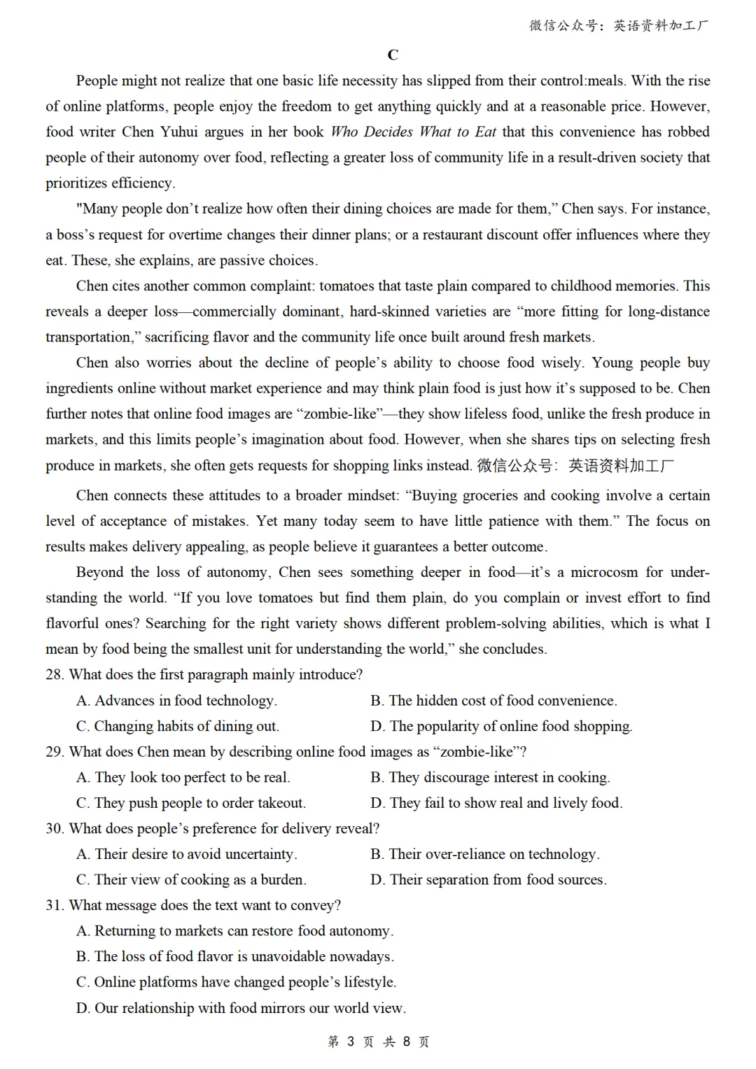 【阅读CD】免费下载!26年3月各地高三联考/模拟考英语阅读C篇、D篇各32篇合集,含答案解析