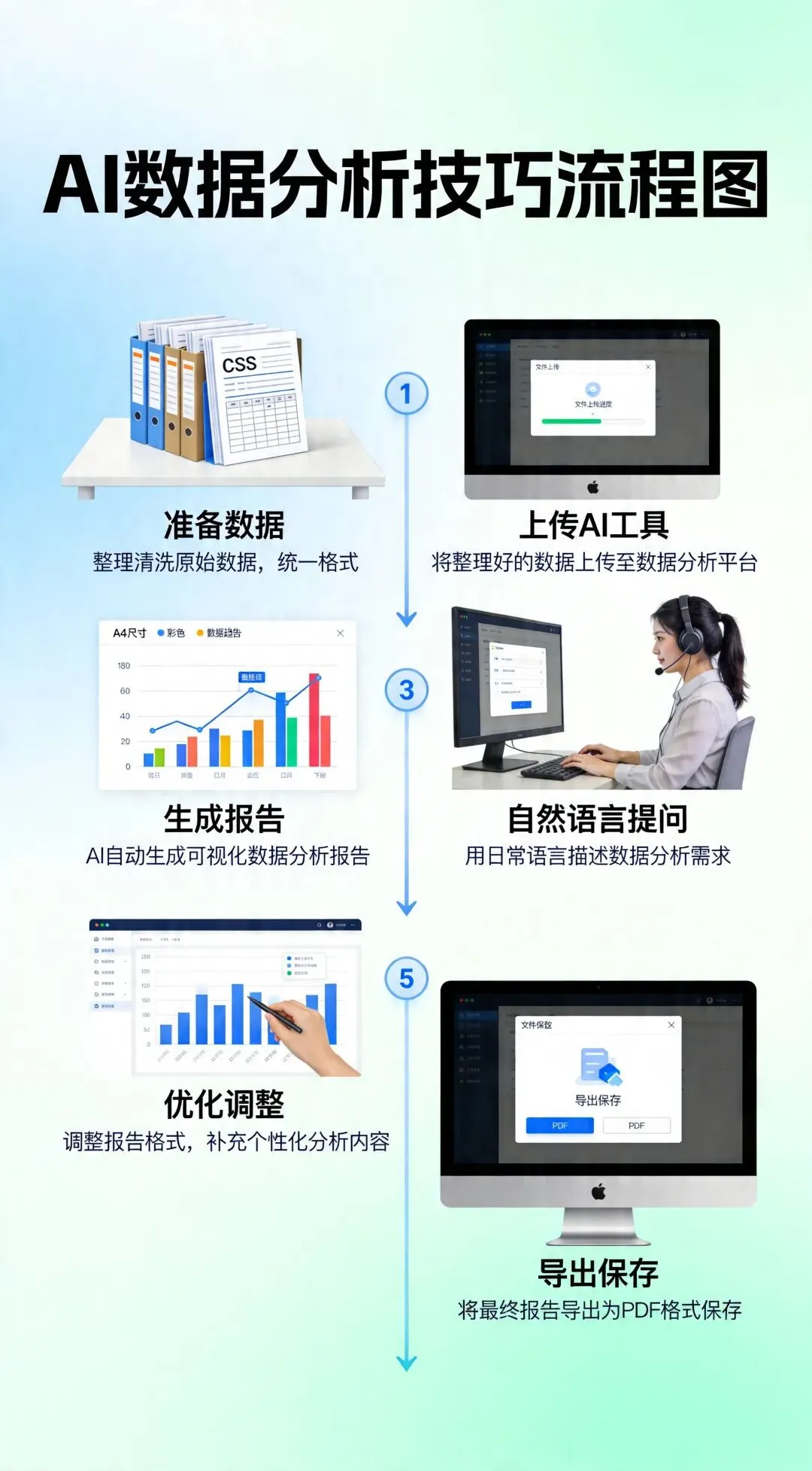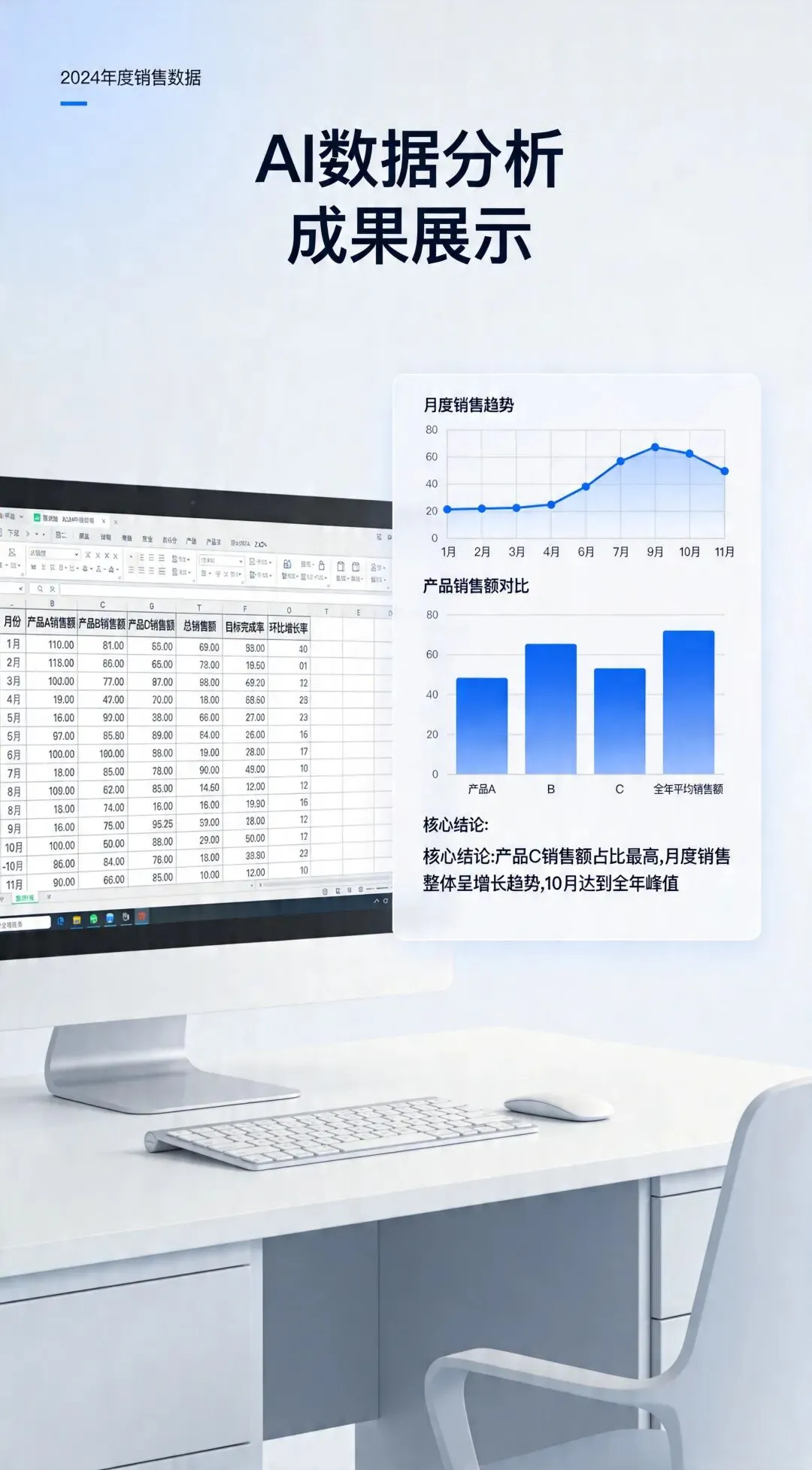 你是不是也想用AI做数据分析,但打开Excel就头大?手动计算、做图表、写报告,一坐就是大半天,效率低得可怜。其实,用AI做数据分析真的超简单,不用学复杂的公式和函数,3分钟就能搞定一份专业报告!今天手把手教你用AI一键生成数据分析报告,学完就能直接上手,效率提升10倍!