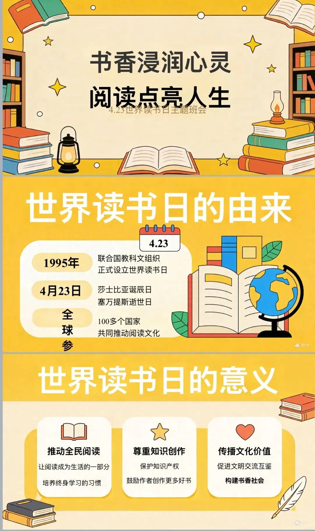 2026世界读书日主题班会ppt(免费下载)——书香浸润心灵,阅读点亮人生