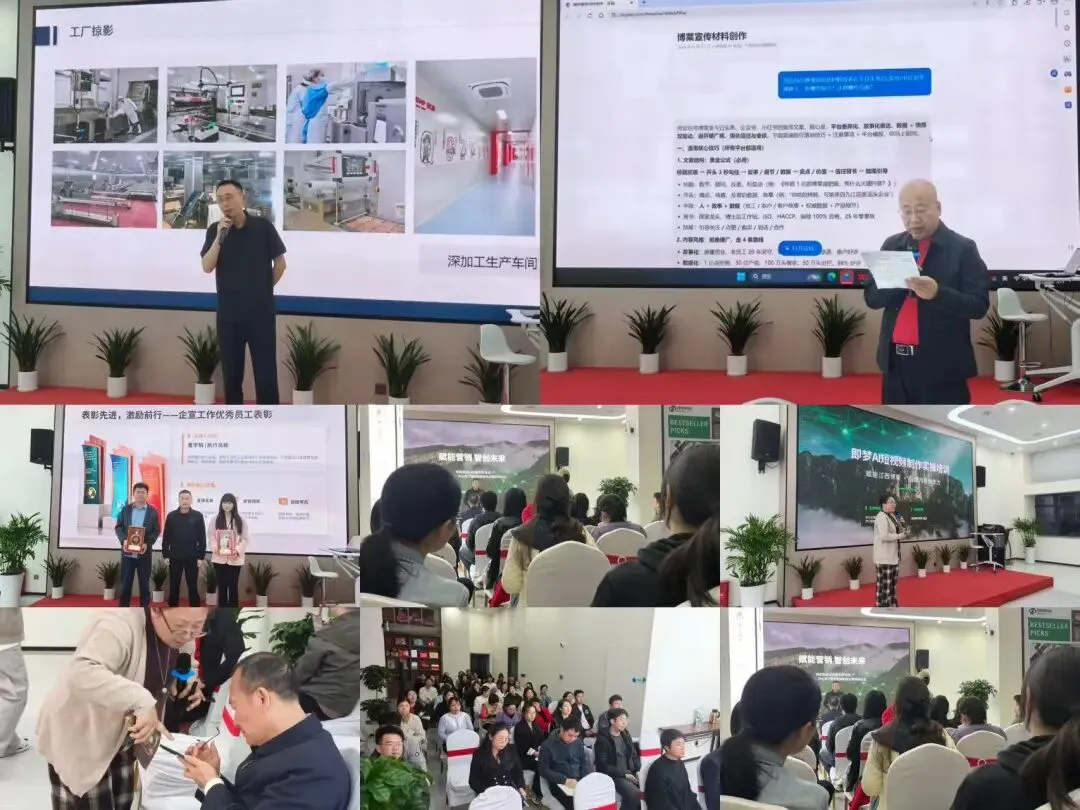 活动伊始,唐进波董事长为本次培训致辞、指明方向。随后进入颁奖环节,现场宣布上周企业宣传工作获奖人员名单并颁奖。颁奖结束后,张海英副总裁为员工推介公司营销策略与产品宣传要点,董学柏总裁、吴洁老师结合实操案例,演示豆包等AI工具用法,引导员工动手实践。员工们纷纷表示收获颇丰,此次培训为后续高效工作及企业高质量发展注入新动能。