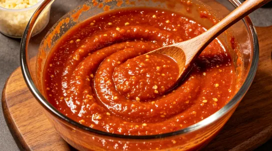 姜末15g、玉米粉10g、生抽、韩国辣酱、胡椒粉、白糖、芝麻油、鸡精适量,混合搅匀,鲜辣开胃,适配烤海鲜与肉肠。