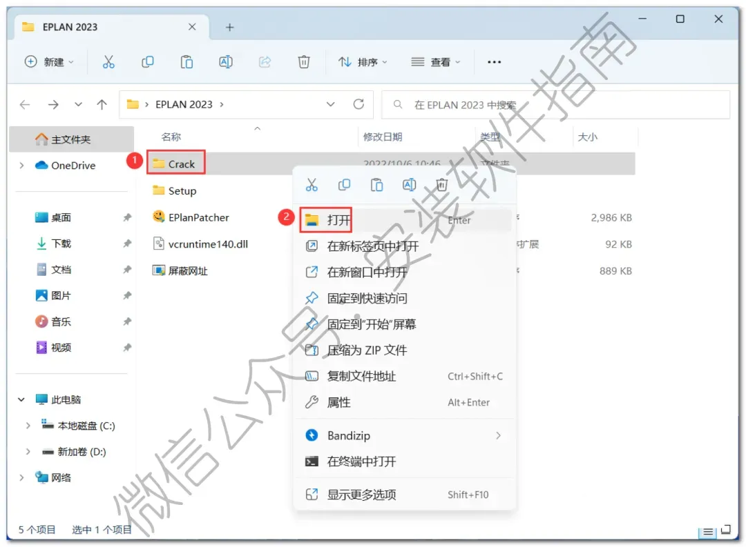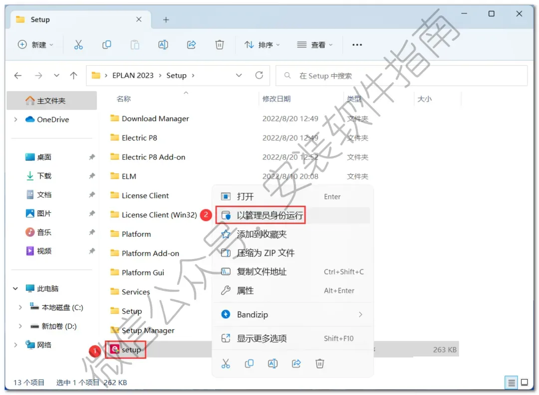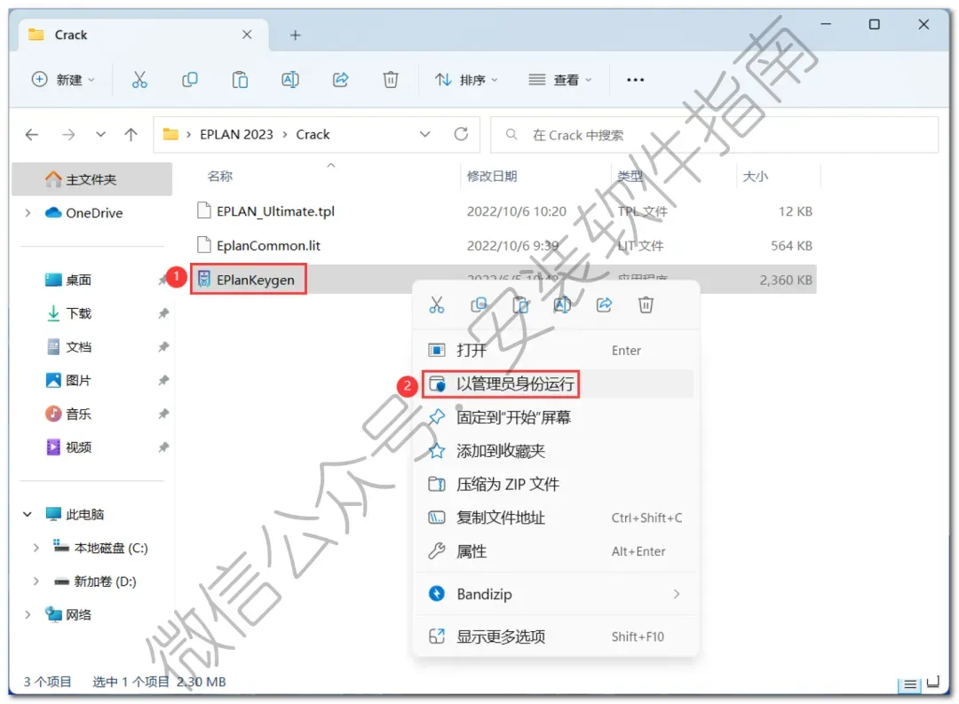16、回到EPLAN 2023文件夹,找到【EPlanPatcher】应用程序,右键选择【以管理员身份运行】它